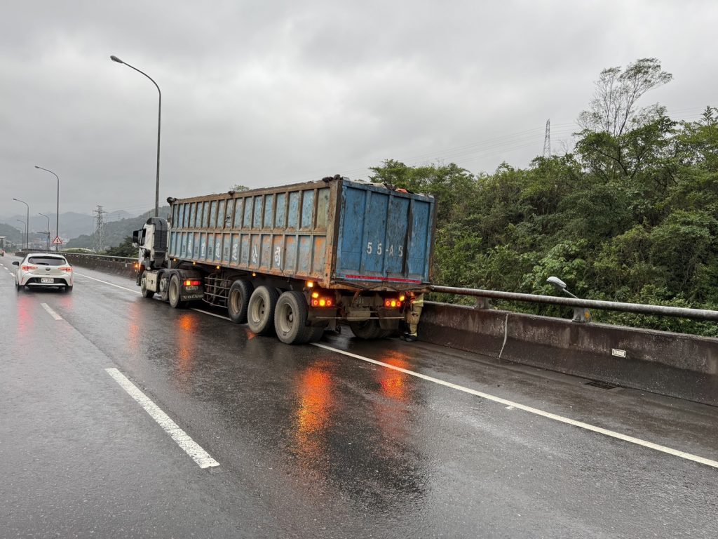 警方表示,這起事故發生於上午約七時十四分,地點位於台六十二線東向九點二公里處。大卡車行駛途中突然爆胎,駕駛即時減速靠邊停車,未與其他車輛發生碰撞。但因掉落物散落於車道上,導致車流回堵。
