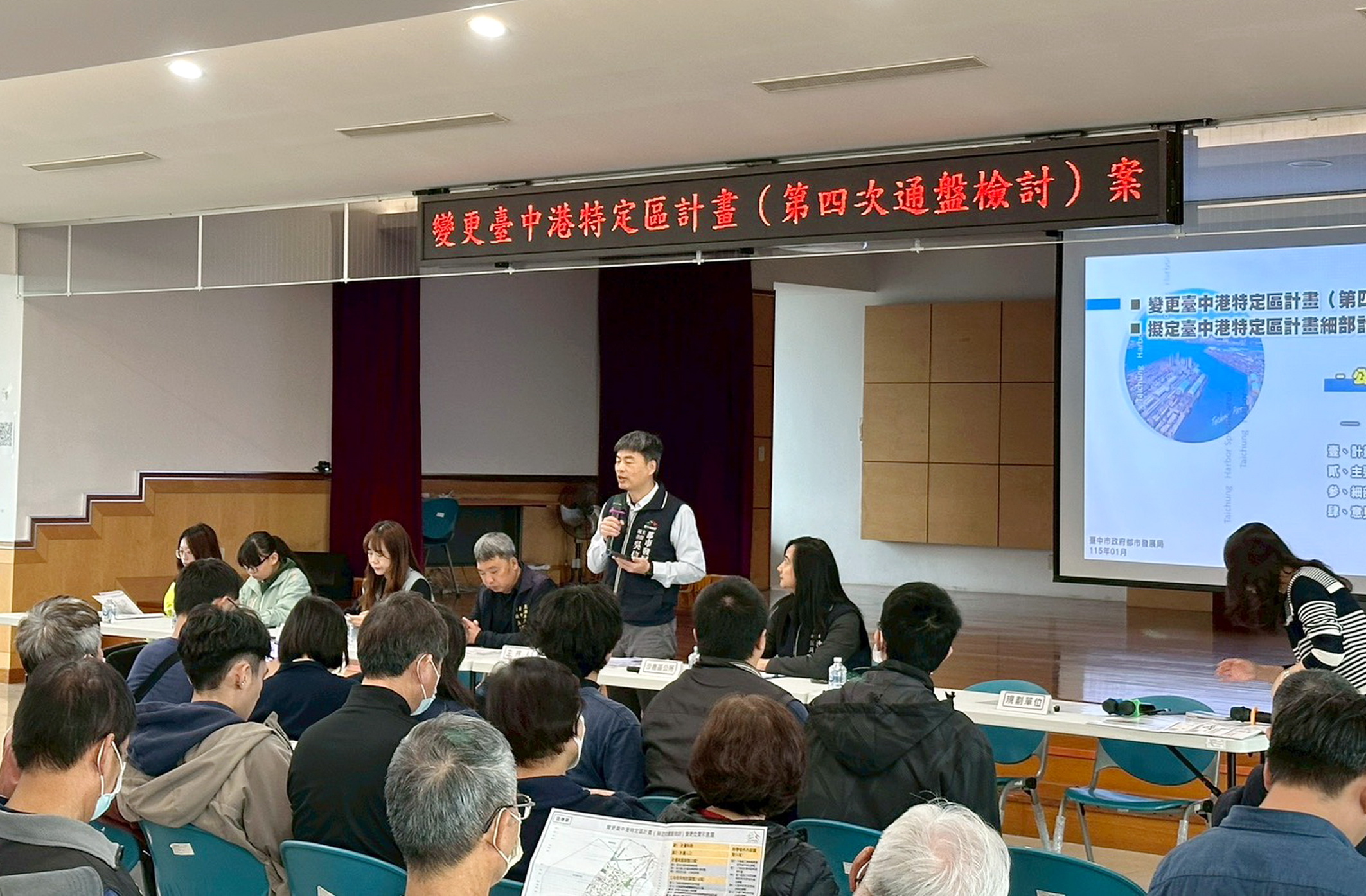 台中市政府都市發展局辦理「變更台中港特定區計畫(第四次通盤檢討)案」暨「擬定台中港特定區計畫細部計畫案」公開展覽,並於沙鹿區、清水區、大肚區及梧棲區公所分別召開四場公展說明會,都發局長李正偉表示,希望透過說明會廣泛收集地方民意,未來將納入台中港特定區都市計畫審議參考。