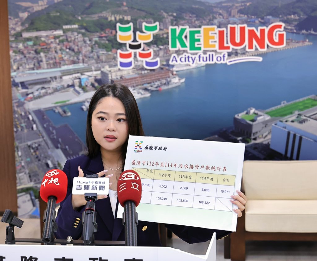 基隆汙水接管進度超前,市府副發言人鍾明以數據證明。(記者王慕慈攝)