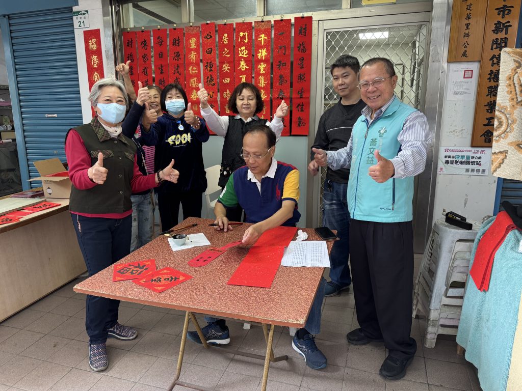 市議員黃文益特派其副主任翁明道到場協助,由於現場里民索取相當熱絡,加上氣候溫暖,里內志工還幫忙將書寫好的春聯掛在一旁晾乾,讓上百幅春聯齊掛的畫面相當壯觀。