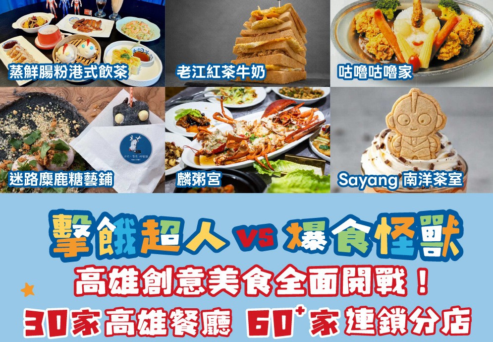 經發局長廖泰翔表示,今年燈會除了在愛河灣的主展區外,更以經典IP的全年齡層影響力,透過「擊餓超人 VS 爆食怪獸」的主題包裝,鼓勵在地業者發揮創意,將餐飲與本屆冬日遊樂園主角結合,以造型、口味等特色融入其中,開發出具備視覺衝擊與味覺享受的限定商品,展現高雄餐飲美食的創意美味。