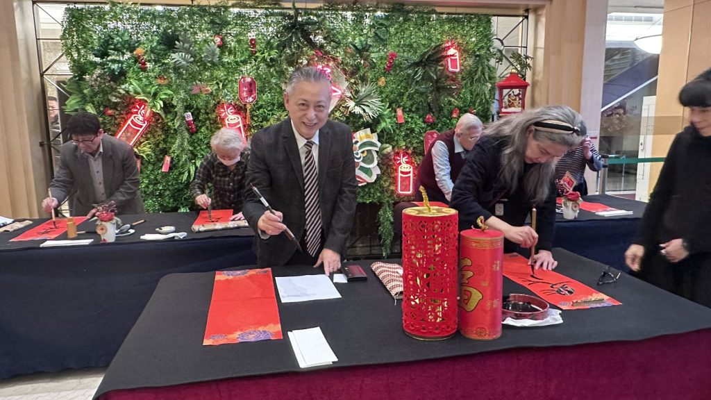 長榮桂冠邀請研露書會書法名家於農曆年前為賓客揮毫贈春聯,至今已連續舉辦第九年。多年來透過不同書體與創作風格的現場展演,讓民眾體驗書法藝術的筆韻之美與文化底蘊,也讓傳統藝術自然融入現代生活,深受旅客與在地民眾喜愛。在飯店咖啡廳用餐滿一千贈送單字春聯一張、滿三千送四字春聯一張;住宿打卡的房客即贈送一張春聯。十七至二十日住宿房客還可參加飯店準備的小遊戲、拿贈品。