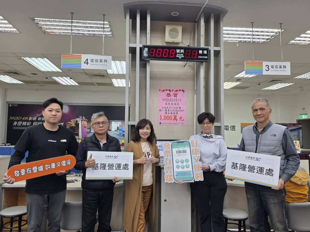 北區國稅局基隆分局表示,一一四年十一、十二月統一發票開獎,其中一組特別獎一千萬元的發票落在基隆,這位幸運兒於十一月到電信公司繳費,僅花一百七十三元就幸運抱回千萬大獎。