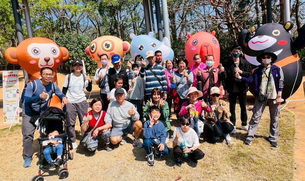 壽山動物園「壽Q家族」全新IP形象於春節期間正式亮相,園方同步推出走春雙重賞活動,邀請民眾於廿二日前入園與「壽Q家族」拍照打卡上傳園方臉書,並參加線上票選活動,就有機會獲得限量周邊好禮。