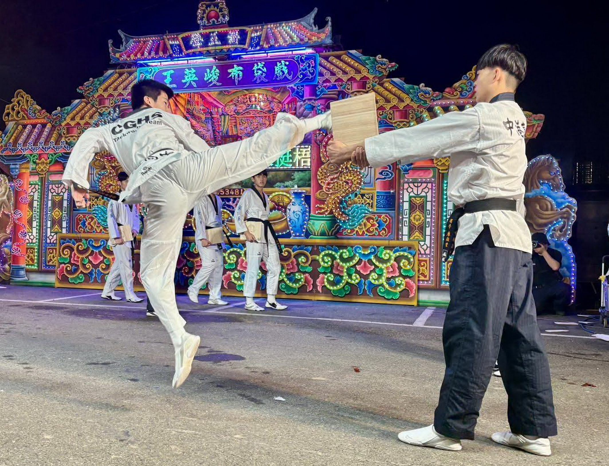 「瑞馬來草湳迓古仔燈」慶元宵活動,並有中港高中跆拳道表演、小丑及扯鈴表演等豐富節目,廟方貼心準備地瓜丸、棉花糖供現場民眾免費享用,更有應景的馬型造型氣球,現場營造出濃厚的節慶氛圍,大人小孩都歡喜。