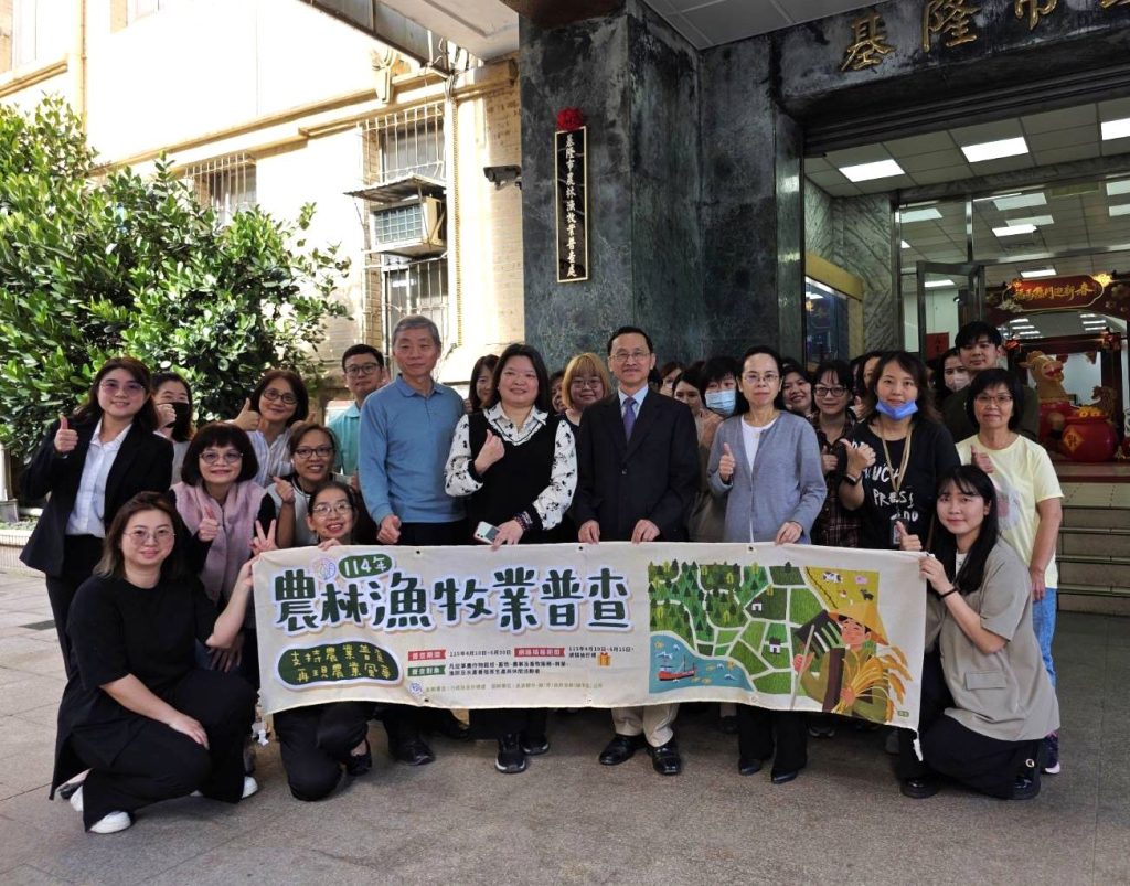 「基隆市農林漁牧業普查處」二日成立掛牌,普查實地訪查工作期間為四月十日至四月三十日先採網路填報,五月一日至六月三十日再採實地訪查,籲請從事農林漁牧業者支持配合一一四年農林漁牧業普查,期使圓滿完成普查任務。