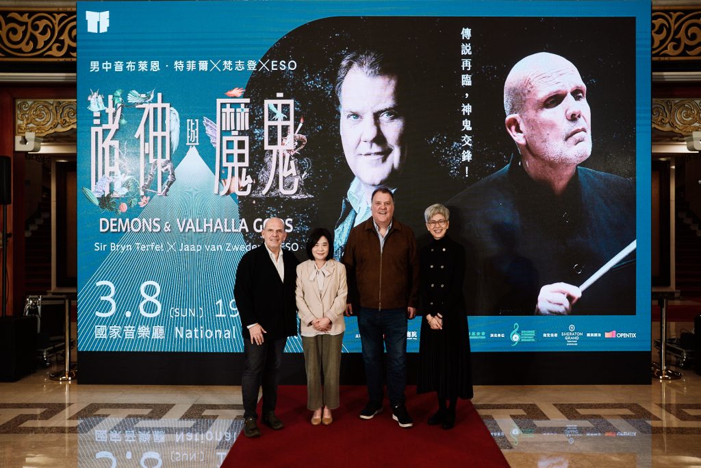 記者會合照左起指揮梵志登、張榮發基金會執行長鍾德美、男中音布萊恩.特菲爾、國家兩廳院藝術總監劉怡汝(兩廳院提供)
