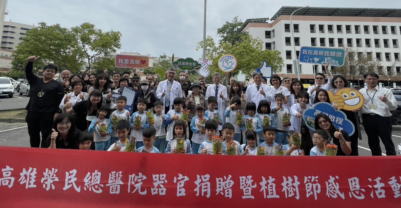 高雄榮民總醫院十日舉辦「植愛高榮,生生不息」器官捐贈暨植樹節感恩活動,向器官捐贈者的無私大愛致敬,並透過植樹為地球播下希望,並藉由院內優美的愛河綠廊道,實踐守護病患身心靈的全人醫療承諾。