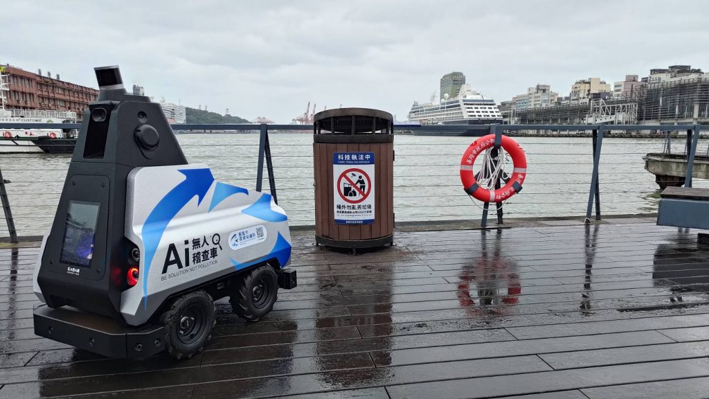環保局長馬仲豪表示,基隆全台首創將AI無人稽查車投入環境維護工作,成為環境稽查與市容維護的全新助力,具備六項特色。AI系統可優化既有稽查人員的工作配置,取代部分巡檢人力降低行政業務成本;無人車具備五個鏡頭、十二組超音波感測器可進行自動導航與三百六十度3D雷達環景系統偵測,透過AI自主沿路巡檢,可於指定範圍內巡查髒亂點,主動通報清潔人員即時清除。同時,還可透過AI辨識公共垃圾桶狀態,若垃圾量滿溢將通報管理單位改善。