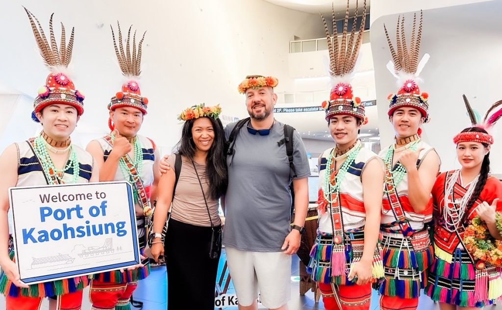 為迎接以歐美籍旅客為主的515位郵輪旅客蒞臨高雄港,高雄港務分公司與高雄市政府海洋局合作安排迎賓活動,現場由原住民迎賓舞蹈揭開序幕,透過熱情洋溢的歌舞迎接遠道而來的旅客,並邀請旅客配戴原住民頭飾,一同參與互動,親身感受臺灣多元文化的魅力。此外,高雄港務分公司亦安排春聯書法體驗,由專業書法老師指導旅客揮毫,並將旅客的英文名字轉換為中文書寫於春聯上,讓旅客將這份富含臺灣特色的文化紀念帶回家。