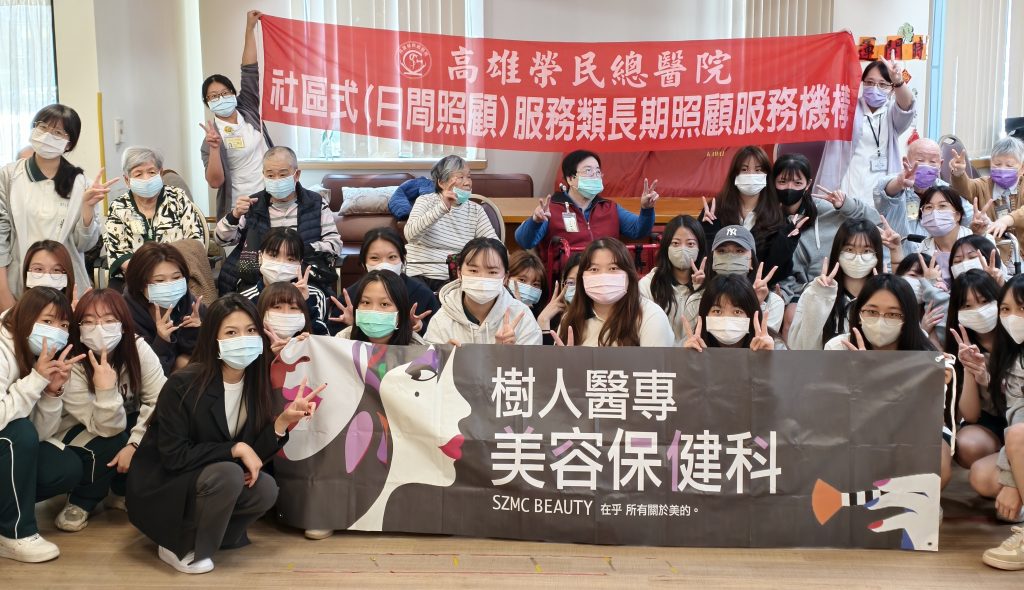 高雄榮民總醫院樂齡日照中心,為促進高齡長者身心健康,舉辦「青春美麗妝點歲月」樂齡美容體驗暨家屬支持活動,攜手樹人醫護管理專科學校美容保健科師生,共同為長輩提供彩妝造型與舒壓按摩服務,讓長者透過專業美容體驗展現自信與風采。