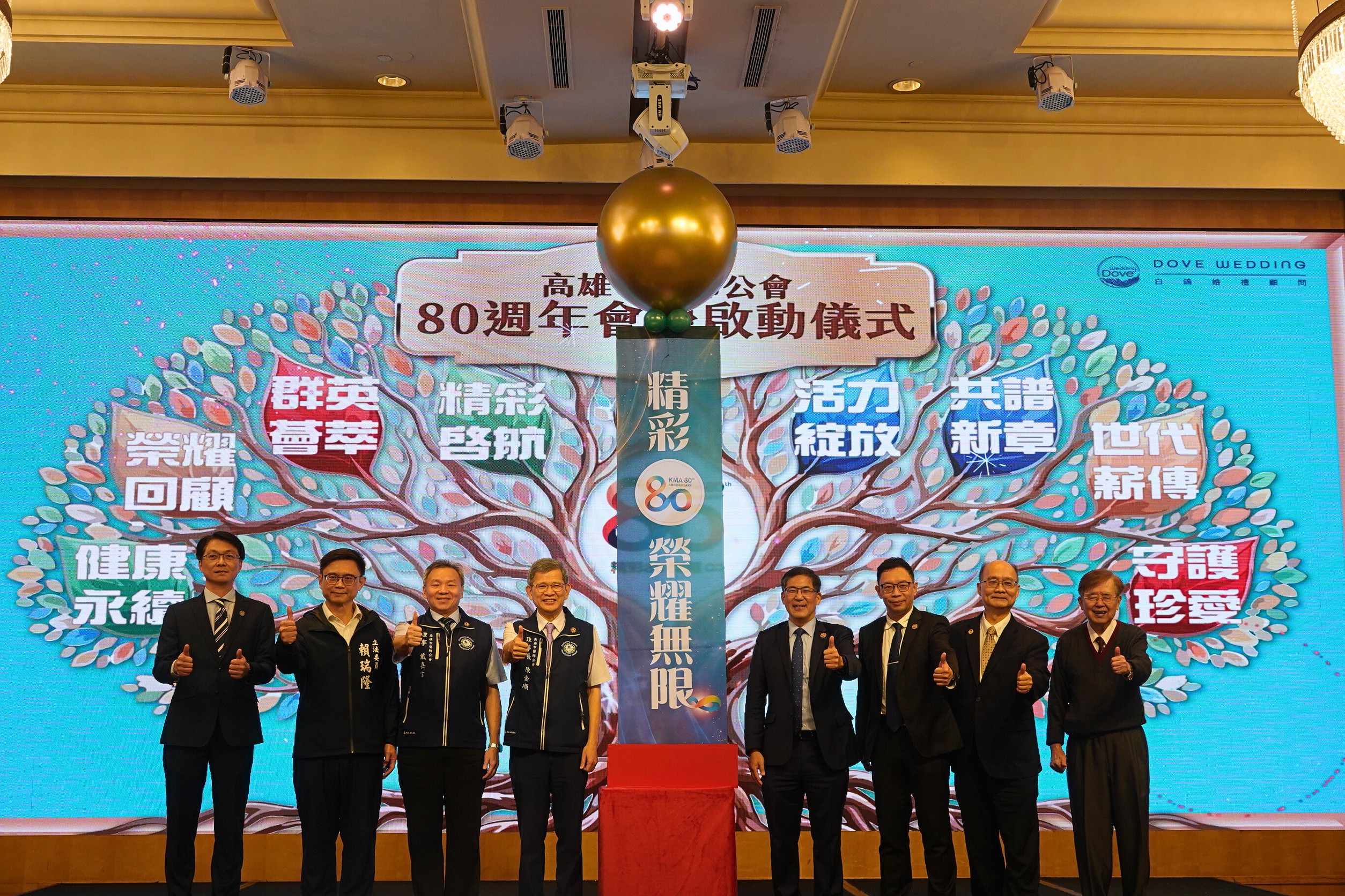 高市醫公會理事長陳金順並邀高雄醫學大學董事長陳建志、高雄醫學大學附設中和紀念醫院副院長戴嘉言、賴瑞隆立委、高雄地檢署檢察長黃元冠等人,共同按下啟動鈕,並從氣球中彈出「精彩80,榮耀無限」主題標語,歡慶80週年系列活動正式展開。