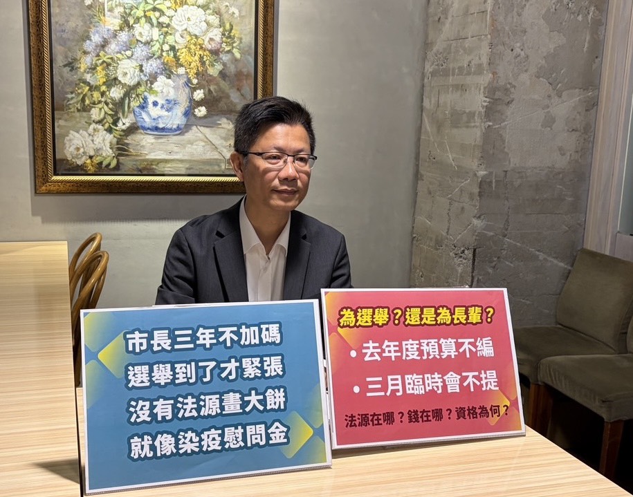 市府宣布將發給長者六千五百元敬老金,民進黨市長參選人、議長童子瑋陣營二十五日批評市長謝國樑精準跟進、抄襲、加碼童子瑋的政見。市府表示,市府認真做事,尊重各界意見。