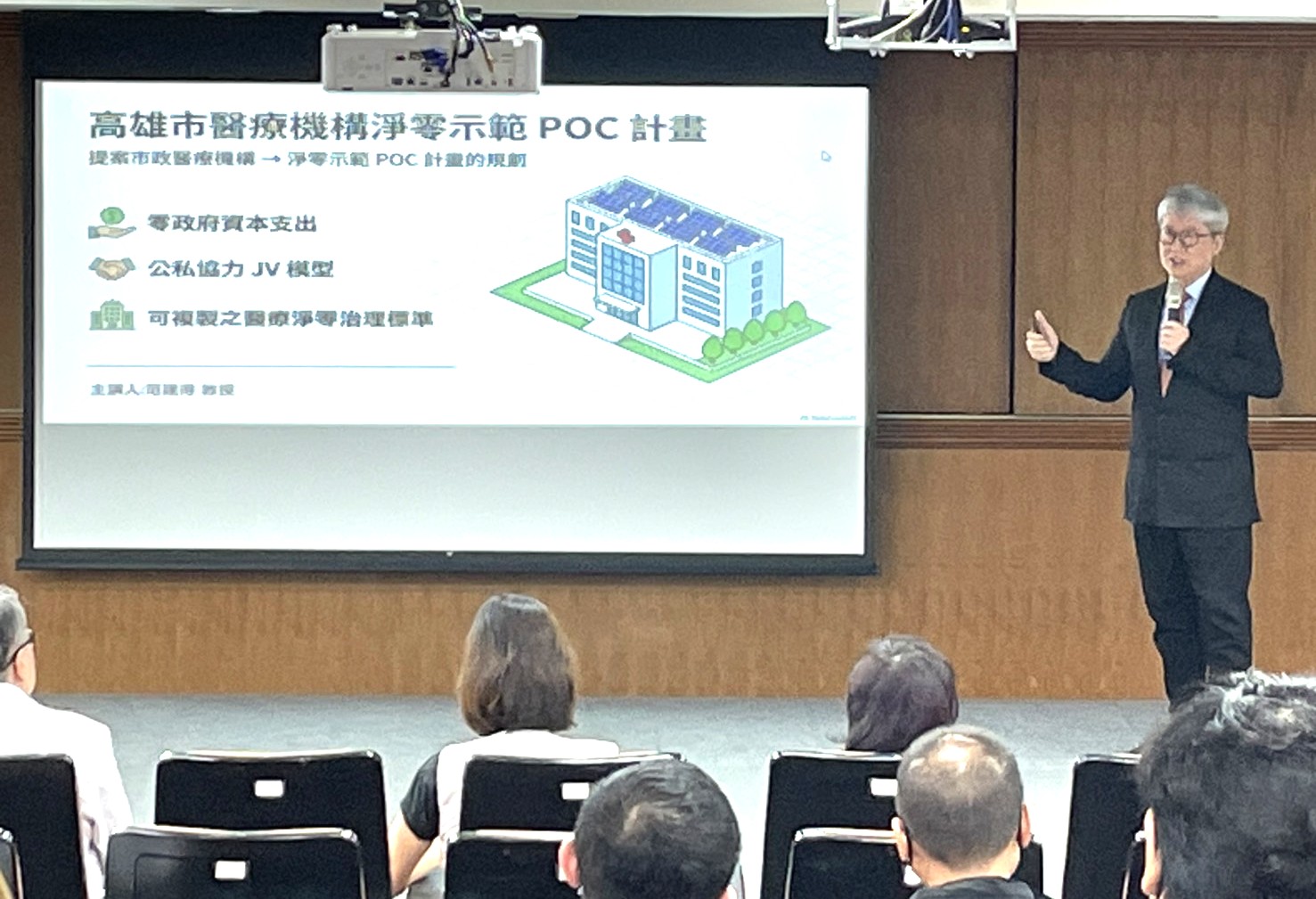 范建得教授指出,成立醫療淨零小聯盟目的是協助市立醫院推動碳權申請、開創經濟發展及示範擴散,接續目標啟動高雄醫療大聯盟平台,由醫院為減量需求端,對外連接企業ESG需求與資金,結合綠色金融、資產管理工具等資源專案執行,完成醫院減量目標,帶動整體醫療產業升級及綠色醫療,並達零政府資本支出、風險隔離與收益自償目標。