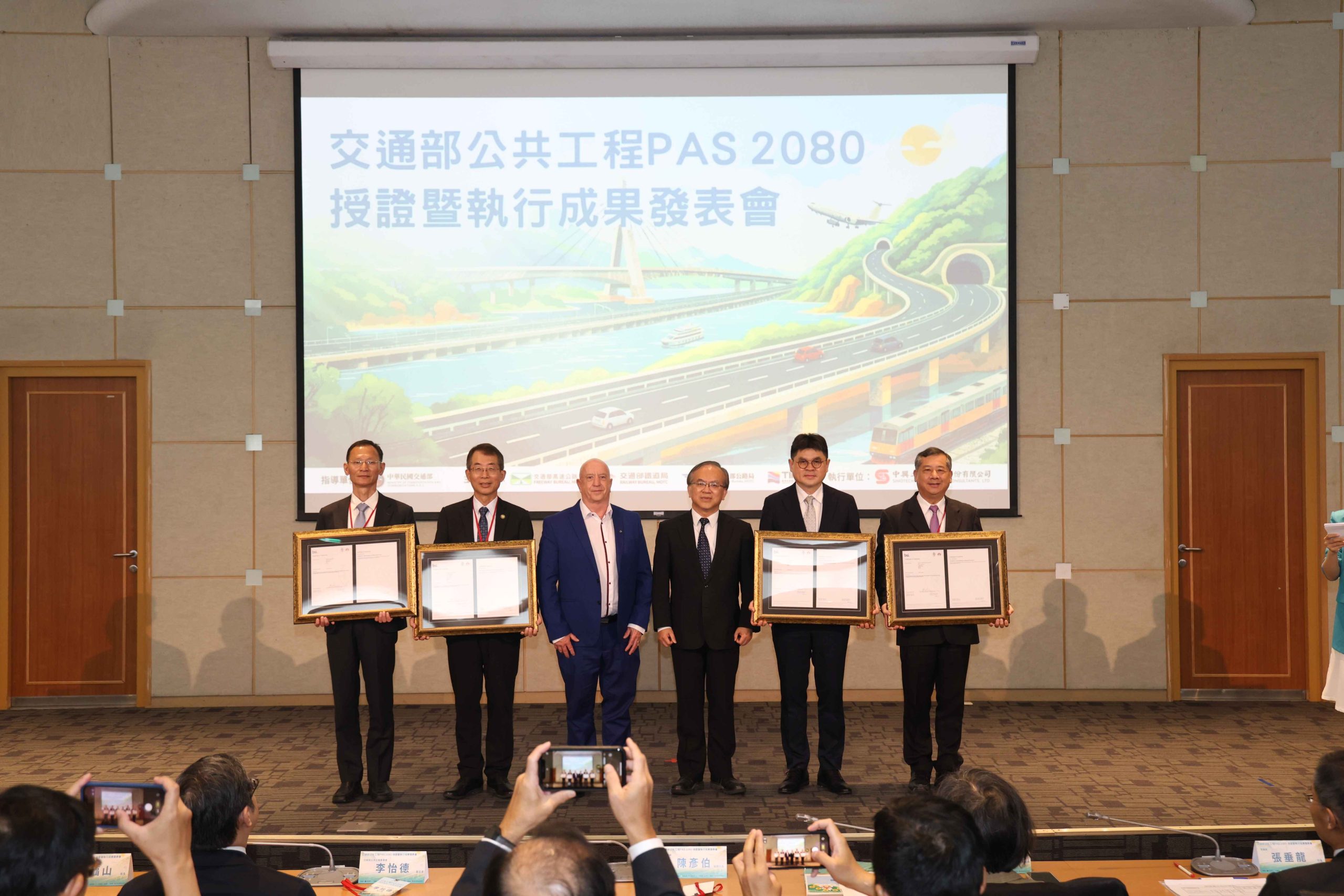 交通部3月31日舉辦「公共工程PAS 2080授證暨執行成果發表會」,由監察院監察委員葉宜津、行政院公共工程委員會副主任委員李怡德及交通部政務次長陳彥伯共同見證,高速公路局、公路局、鐵道局及臺灣港務股份有限公司正式獲頒英國標準協會(BSI)驗證之PAS 2080證書。