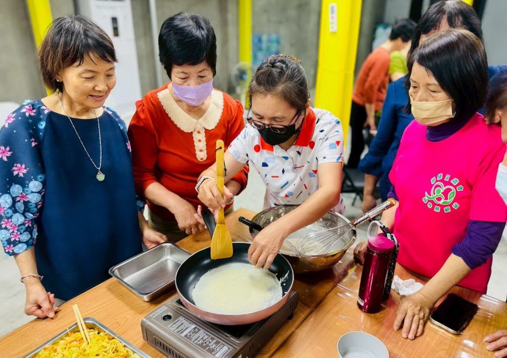 活動現場,從視覺上五彩繽紛的配料,到手中觸感溫潤的餅皮,再到耳邊此起彼落的笑聲,五感被完整喚醒。切菜聲「切切切」如節奏般響起,把高麗菜、紅蘿蔔、豆干細細切絲,也將生命的片段重新整理、聚合。學員們邊做邊聊,空氣中流動著一種熟悉而安心的氛圍,正如「千金難買阮的心肝」,那份情誼無可取代。