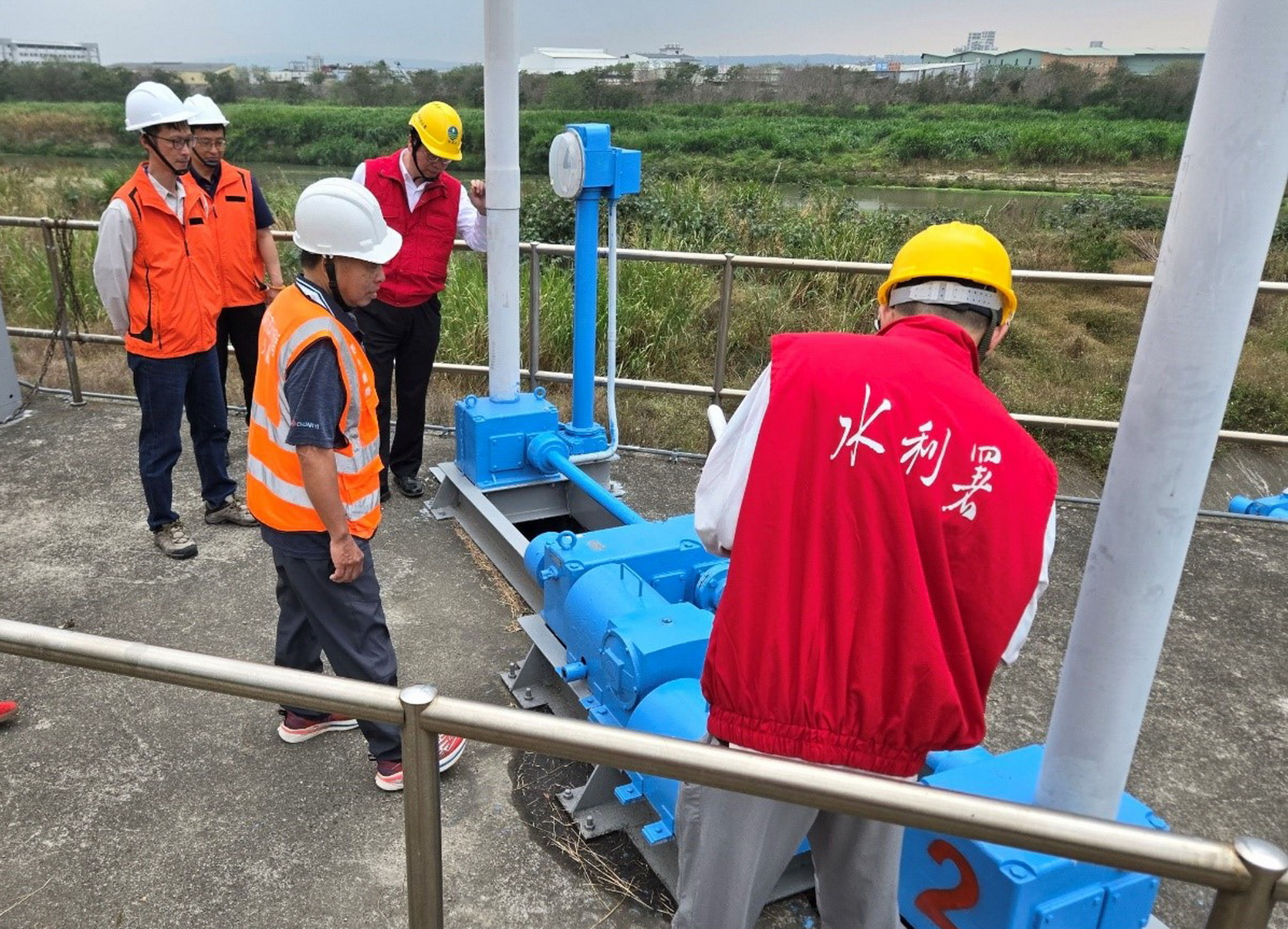 台中市政府實地勘察抽水站設施操作與保養維護情形,為即將到來的汛期做好全面準備。(記者陳金龍攝)