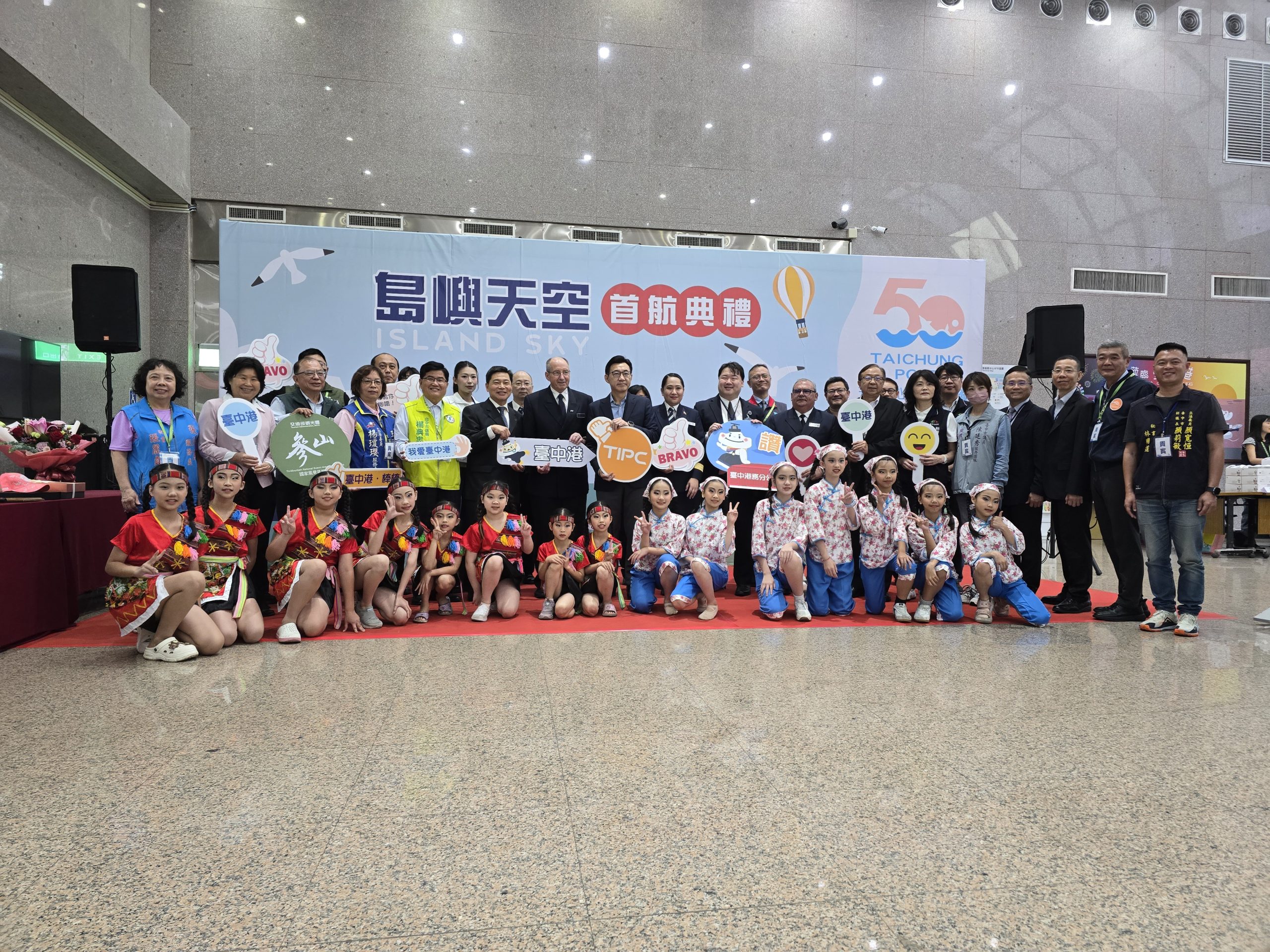 島嶼天空首航臺中港典禮貴賓及表演團體合影。(臺中港務分公司提供)