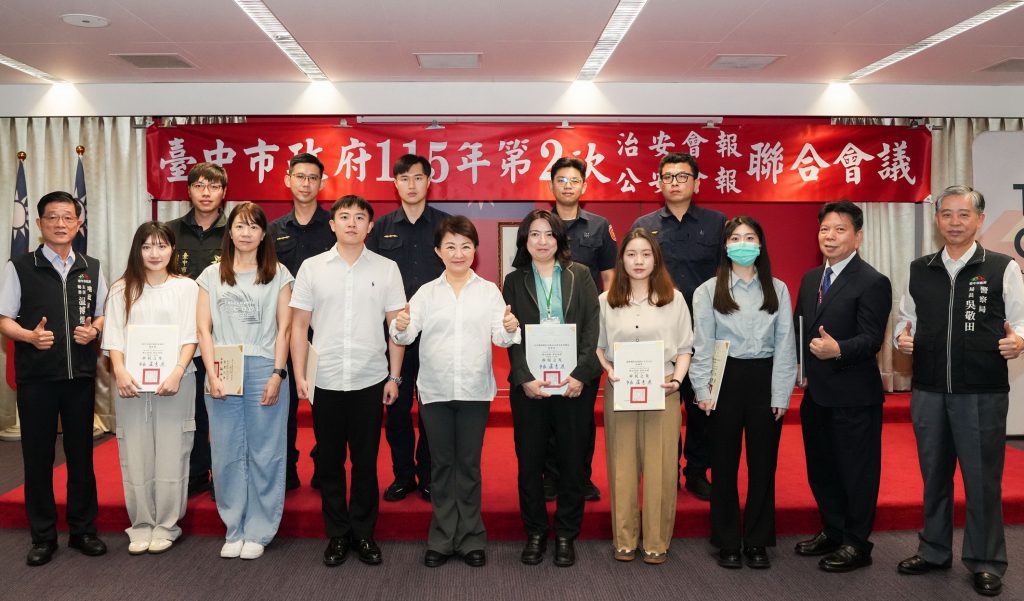 台中市為全國第二大城市,位居中部交通、經濟樞紐,台中市警察局持續以治安各面向為主軸,規劃具體實行對策,致力打造更安全的生活環境。市長盧秀燕十七日於台中市治安及公安會報親自頒獎表揚「台中市成功攔阻詐騙案件有功人員」,致贈感謝狀予金融機構人員、地政人員及警員,特別感謝銀行、超商及民間團體長期配合協助警方打詐,在各自崗位上默默付出,守護市民安全。