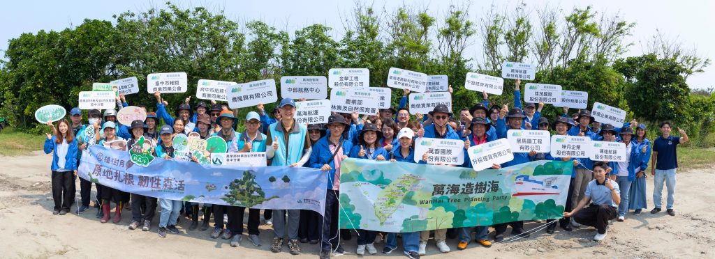 萬海航運攜手林業及自然保育署臺中分署,在臺中市清水區保安林地舉辦植樹活動,邀請客戶與合作夥伴共同參與,親手種下臺灣原生植物,為海岸生態復育與生物多樣性保育注入新的生命力。