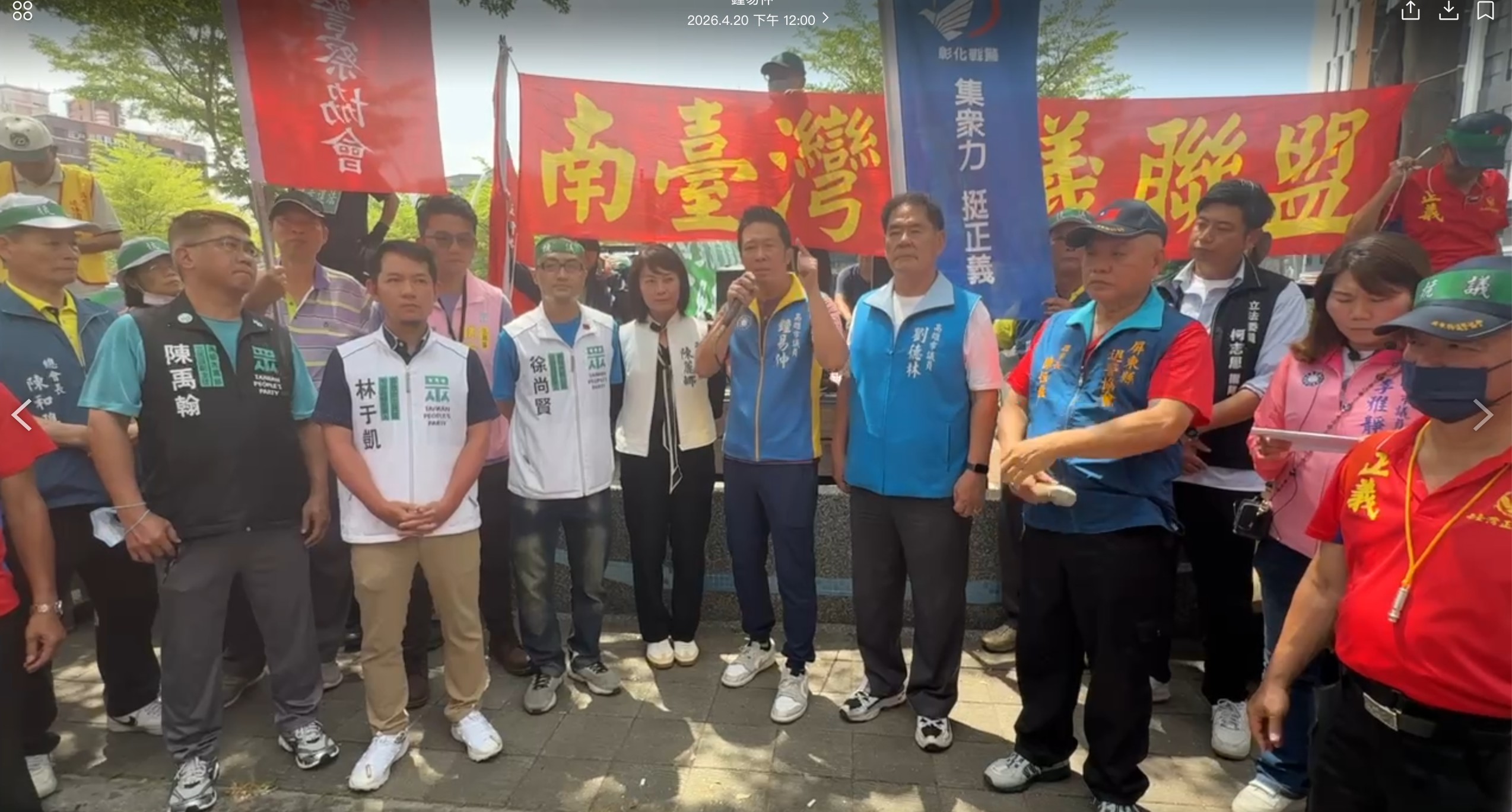 南台灣退警協會等團體在行政院南部服務中心前抗議,市議員鍾易仲表示,民進黨、卓榮泰占著茅坑不拉屎,早就該下台。(鍾易仲提供)