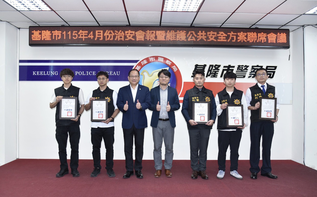 基隆市辦理四月份治安會報,會中頒獎表揚偵破重大刑案及好人好事優良事蹟的警、消同仁,並頒獎表揚基市中國信託商業銀行基隆分行、臺灣銀行基隆分行、國泰世華銀行基隆分行等打詐基隆隊的優秀成員,分別於今年二、三月攔阻詐騙金額新台幣百萬元以上,協助防制詐欺犯罪,守護市民財產安全,期望今後能共同營造安全宜居的社區環境。