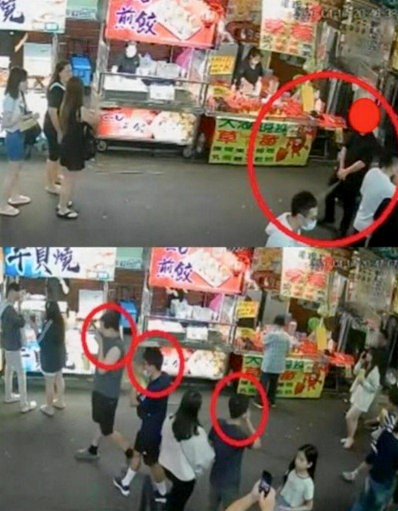 台中市第六警分局長周俊銘因辣椒水噴蓋破裂,四度按壓測試時外洩(上圖),造成路過民眾被嗆掩鼻(下圖)。(記者陳金龍翻攝)