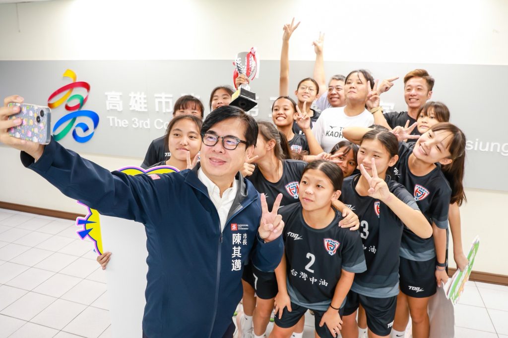 後勁國中女足隊七月赴澳洲參加「國際青少年足球賽」,市長陳其邁勉球員為國爭光。(記者王正平翻攝)