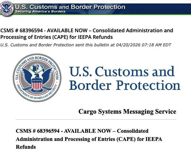 消息指出,CAPE退款系統第一階段主要涵蓋兩類報關記錄,一是尚未清算的條目,二是清算後不超過80天的條目,不包括涉及反傾銷稅或其他複雜情況的條目,後續會逐步擴大範圍。