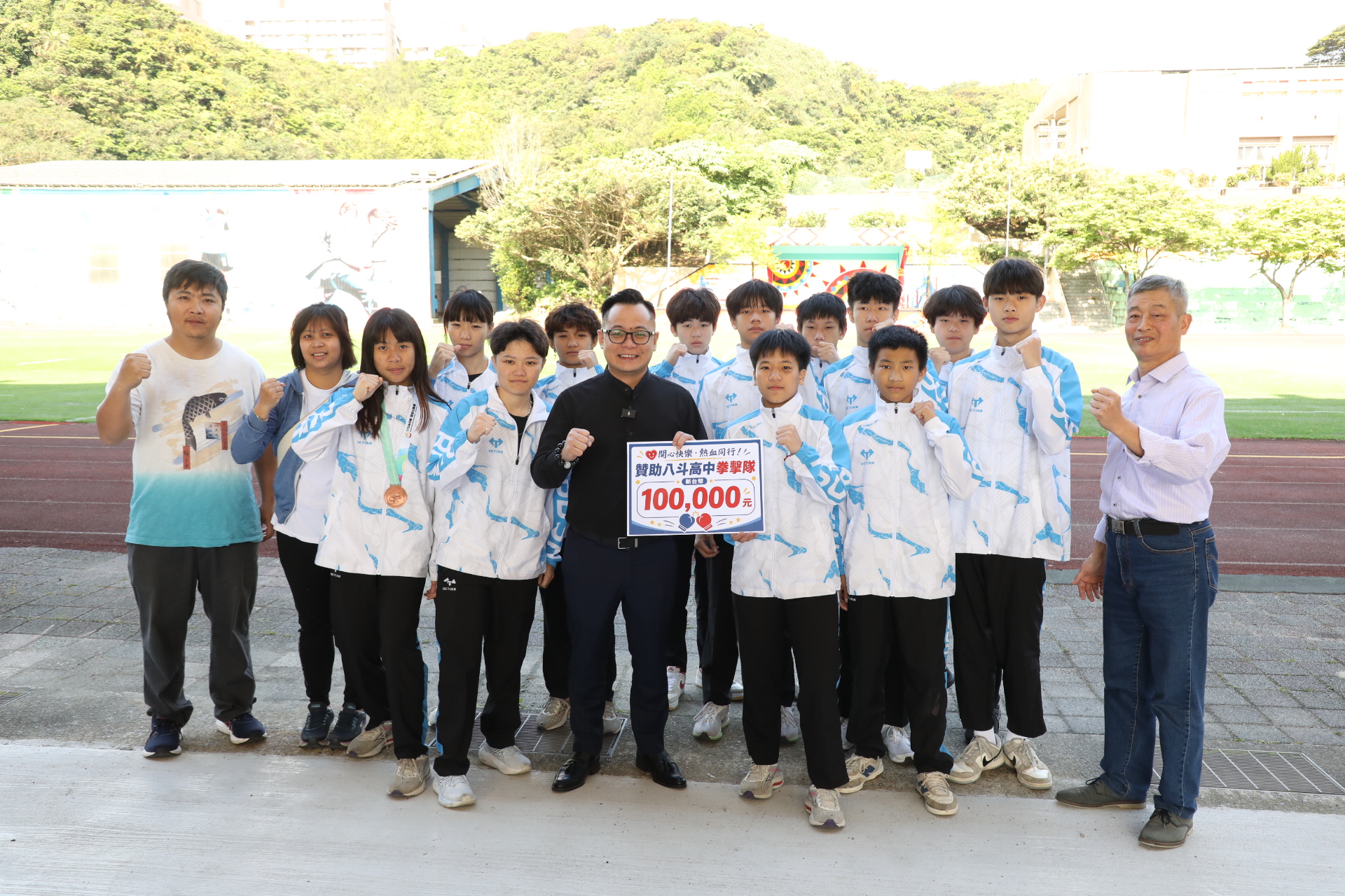 基隆市立八斗高中拳擊隊表現優異,議長童子瑋特別提供十萬元贊助減輕選手與團隊的資源壓力。(議長童子瑋辦公室提供)
