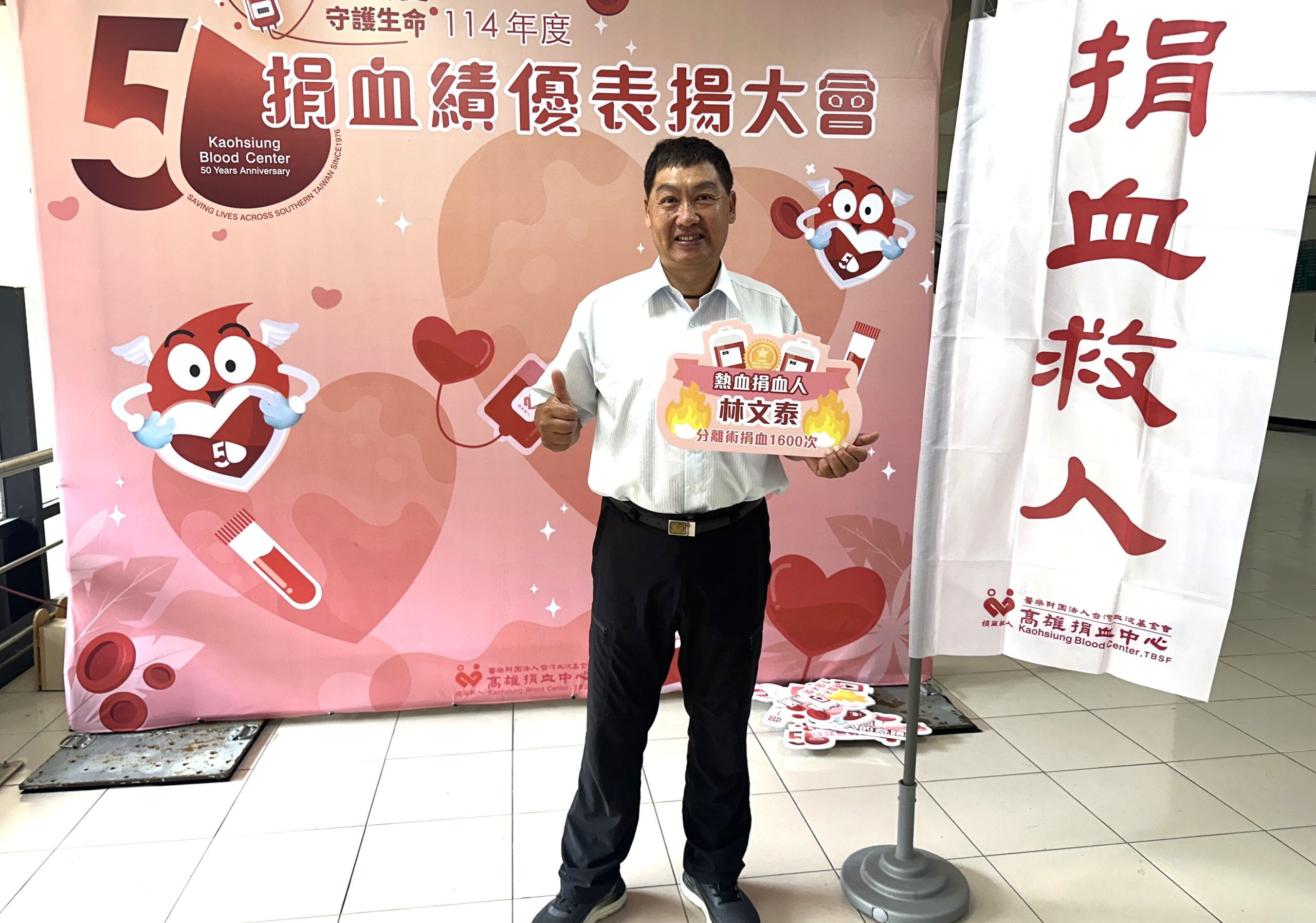 「只是為了想多看一眼年輕漂亮的護理師妹妹,竟一頭栽進捐血行列,還創下一千六百次捐血的紀錄」,在國泰人壽任職的林文泰,三十日在高雄捐血中心一一四年度捐血績優表揚大會接受頒獎表揚,他強調,儘管手臂上的血管已千瘡百孔,但他是一直捐血到不能捐為止。